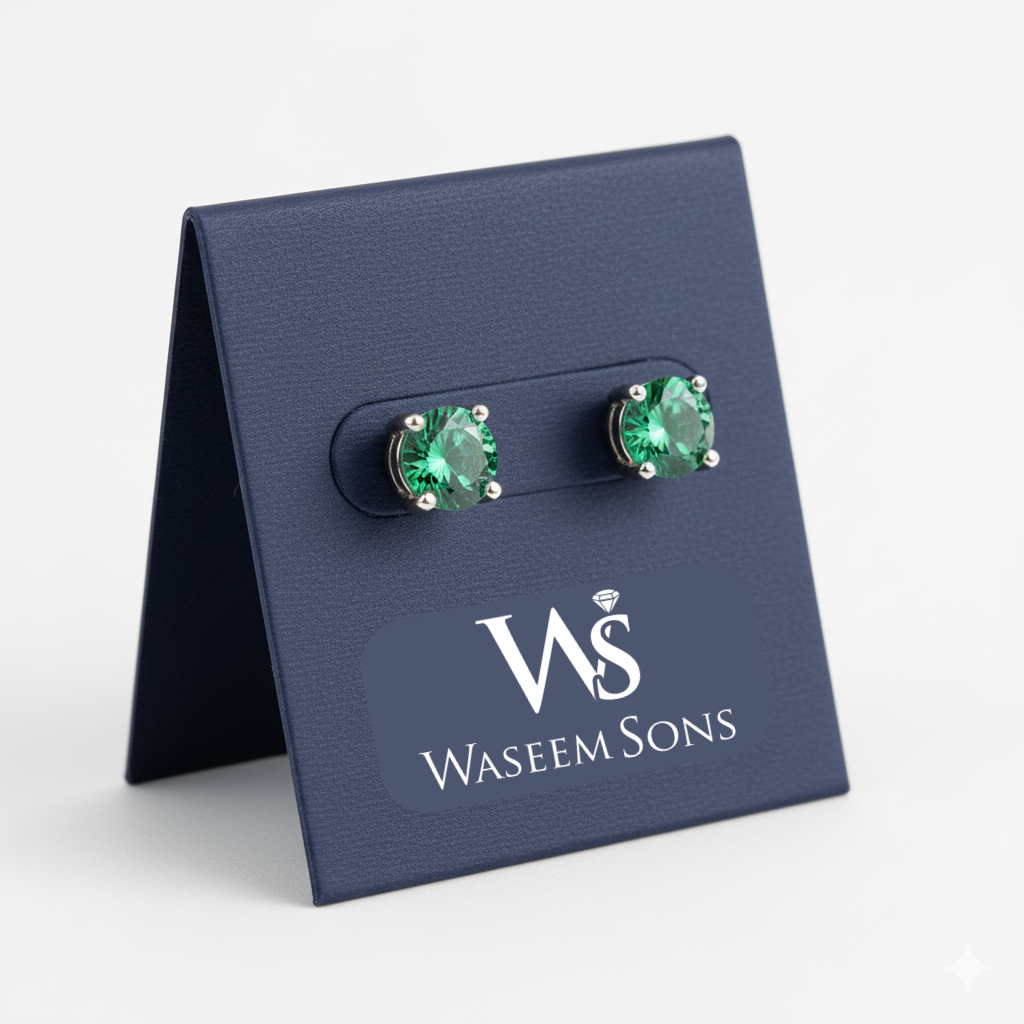 Elegant, timeless, and full of charm — these Green Solitaire Stud Earrings are crafted in 925 sterling silver and feature brilliant emerald-hued zircon stones that radiate sophistication.